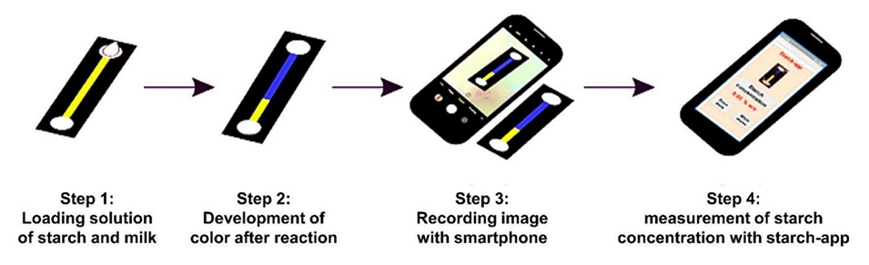 图2.使用智能手机集成PAD传感器测定牛奶中的淀粉。