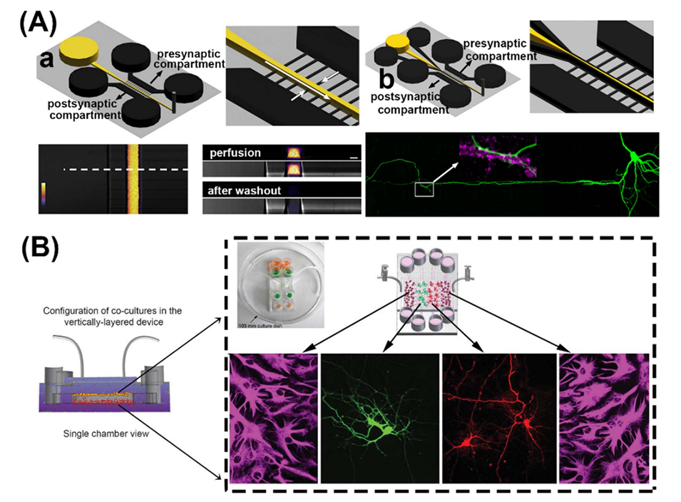 图2.用于神经元突触研究的PIB微流体共培养装置的示例。