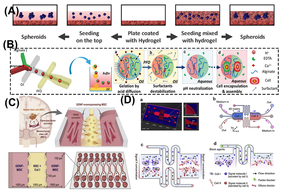 3D微流控平台:通过使用支架或自组装的细胞聚集体,更好地模拟体内微环境,促进细胞间的自然相互作用,提供更高的生理相关性。