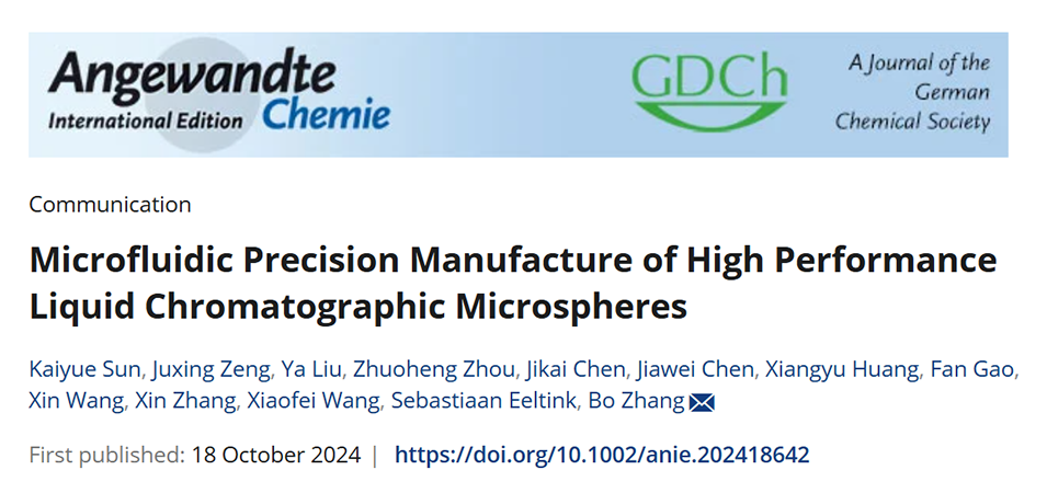 近期,厦门大学张博教授团队提出了一种基于滴液微流控技术的精密制造策略,能够独立控制粒子形态、孔结构和材料化学,从而高效生产具有极窄粒径分布的高性能液相色谱微球,显著提高了分离效率并实现了100%的产出率。相关研究以“Microfluidic Precision Manufacture of High Performance Liquid Chromatographic Microspheres”为题目发表于期刊《Angewandte Chemie International Edition》。