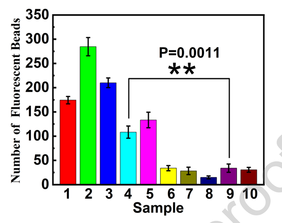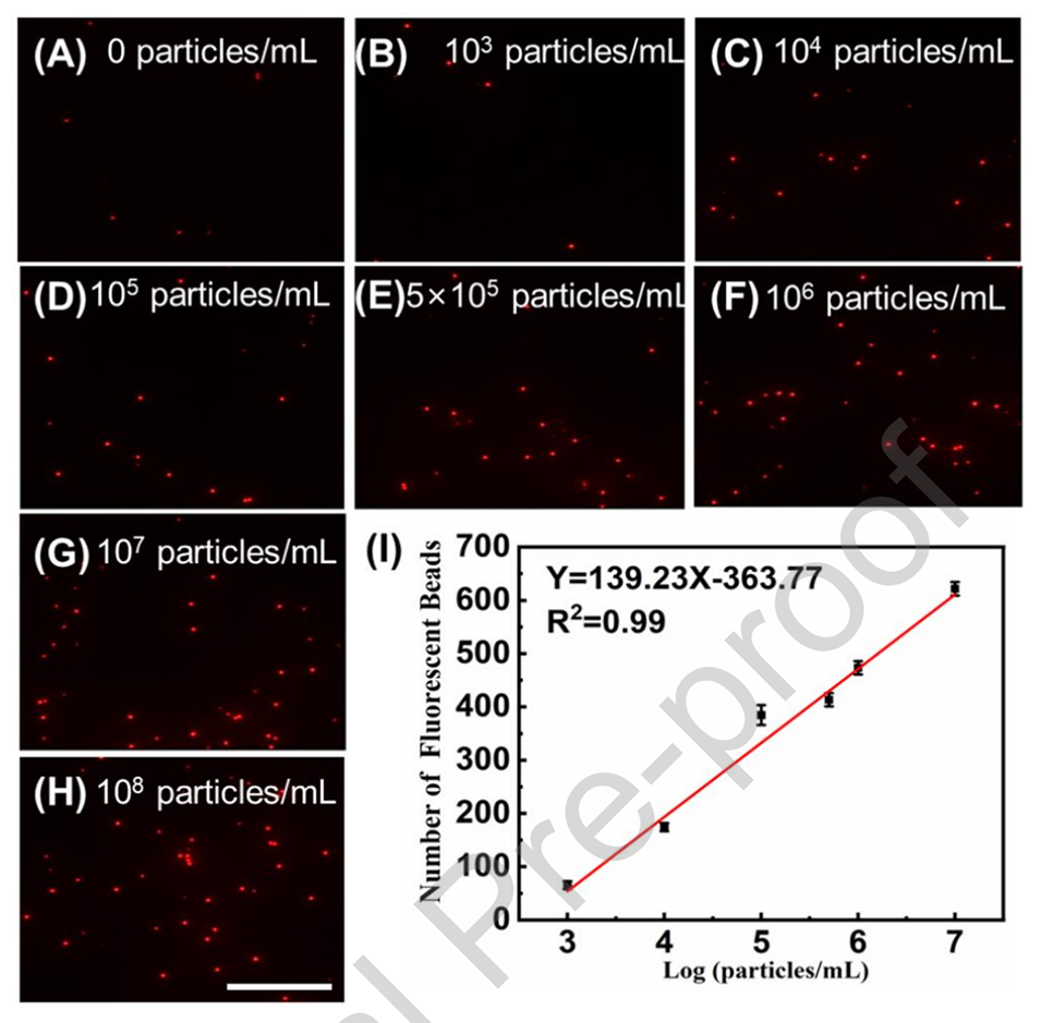 4、单层荧光计数策略:通过单层荧光计数策略,避免了背景干扰,实现了850个颗粒/mL的超低检测限,提高了检测的灵敏度。