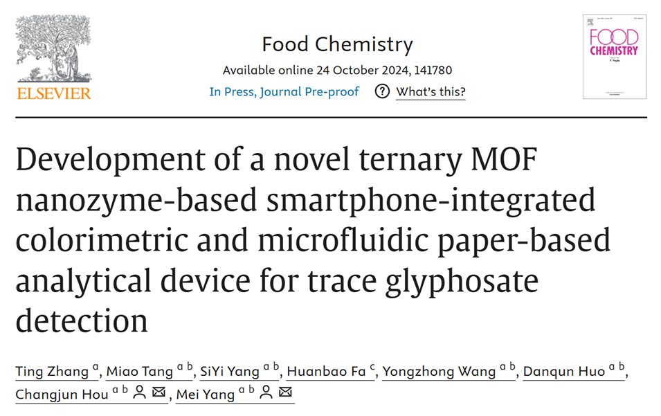 近期,重庆大学侯长军教授&杨眉副教授团队提出了一种基于三元金属有机框架纳米酶的创新比色传感平台,将其与智能手机和纸基微流控芯片无缝集成,实现了超灵敏、便携和快速的草甘膦(GLY)现场检测。相关研究以“Development of a novel ternary MOF nanozyme-based smartphone-integrated colorimetric and microfluidic paper-based analytical device for trace glyphosate detection”为题目,发表在期刊《Food Chemistry》上。