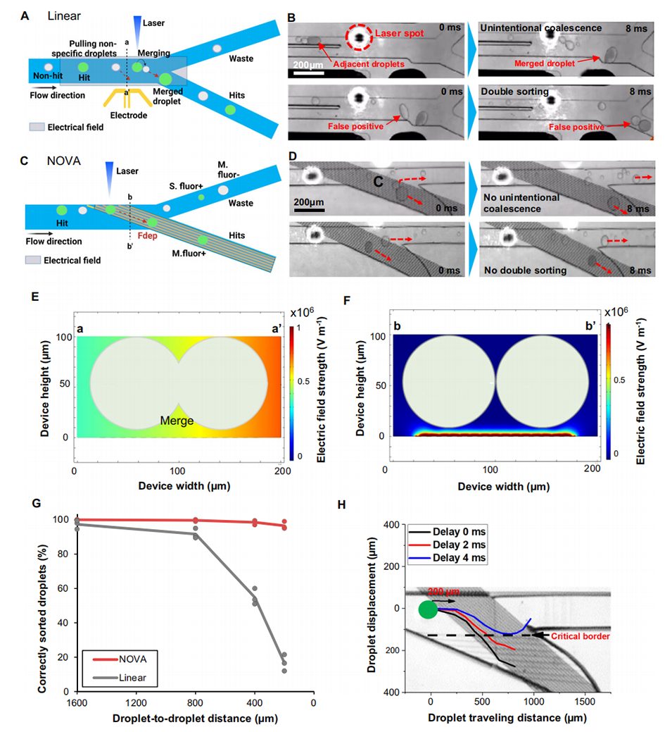 总之,NOVAsort巧妙地利用了微滴的浮力特性和局部化电场,实现了高准确度、高抗干扰性和低功耗的微滴分选,在提高生物技术筛选效率方面具有重要应用价值。