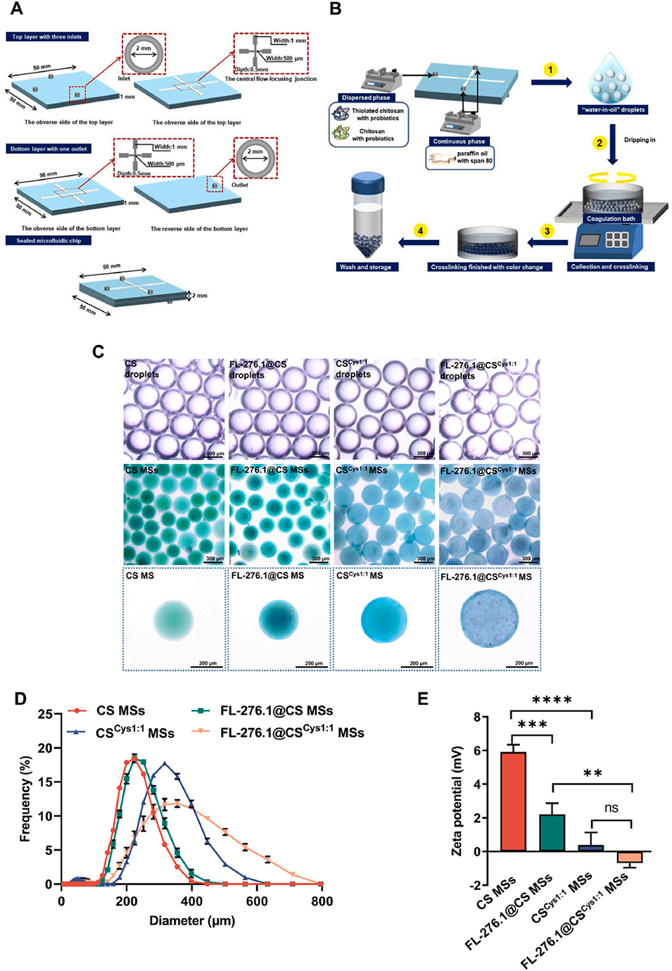 1、本研究采用微流控技术制备了包埋益生菌的半胱氨酸修饰壳聚糖微球,旨在提高益生菌在肠道中的粘附性和存活率。