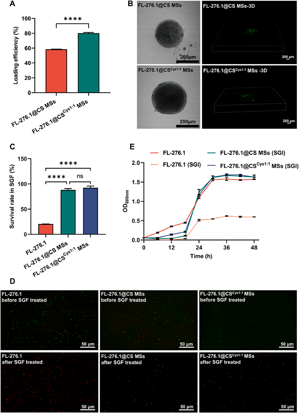 图4.FL-276.1@CS MSs和FL-276.1@CSCys1:1 MSs的封装效率和胃肠道耐受性。