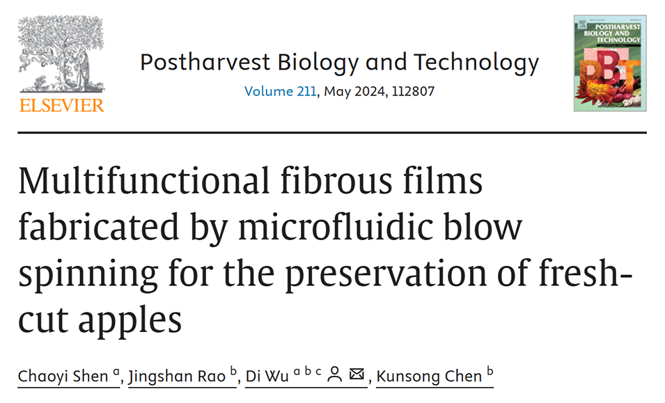 近期,浙江大学吴迪教授团队采用微流控吹纺技术快速制备了多功能纤维膜,并成功负载纳他霉素和抗坏血酸,用于抑制鲜切苹果的褐变和微生物侵染,显示出在延长水果保鲜期方面的巨大潜力。相关研究以“Multifunctional fibrous films fabricated by microfluidic blow spinning for the preservation of fresh-cut apples”为题目,发表在期刊《Postharvest Biology and Technology》上。