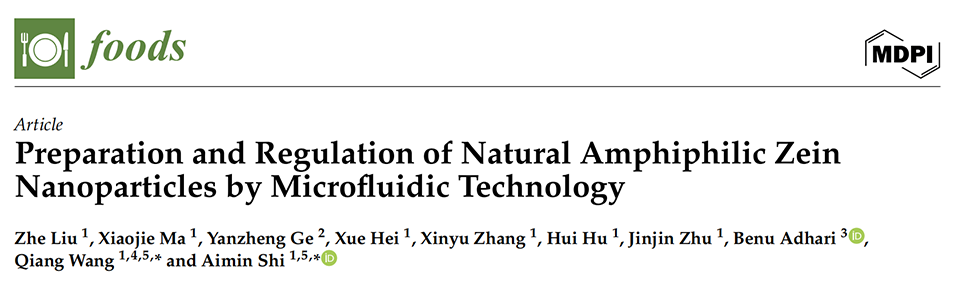 微流控技术作为一种连续、批量制备纳米粒子的方法,近年来备受关注。近期,中国农业科学院农产品加工研究所石爱民团队与澳大利亚皇家墨尔本理工大学Benu Adhikari教授合作,采用微流控技术结合反溶剂法制备了天然两亲性玉米醇溶蛋白纳米颗粒,探讨了乙醇含量及内外相流速对颗粒性质的影响,结果表明该方法可有效控制纳米颗粒的制备过程及其理化性质。相关研究以“Preparation and Regulation of Natural Amphiphilic Zein Nanoparticles by Microfluidic Technology”为题目,发表在期刊《Foods》上。