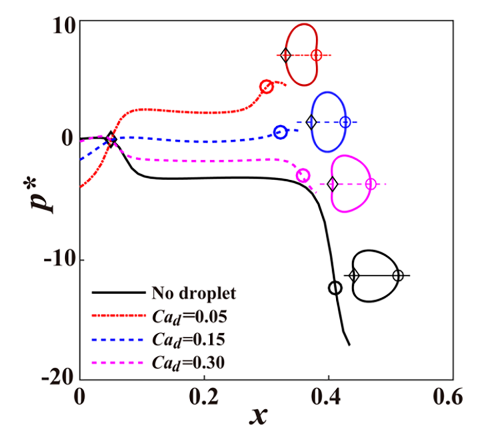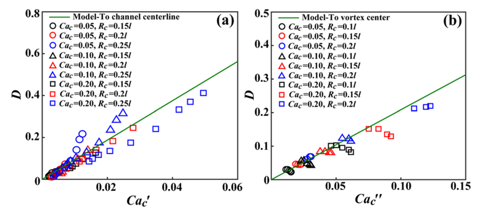 1、探究了经液滴包裹的柔性微胶囊在微通道中流动时的变形特性,发现将微胶囊封装在液滴中可以显著增强其变形能力,变形参数可提高两个数量级。