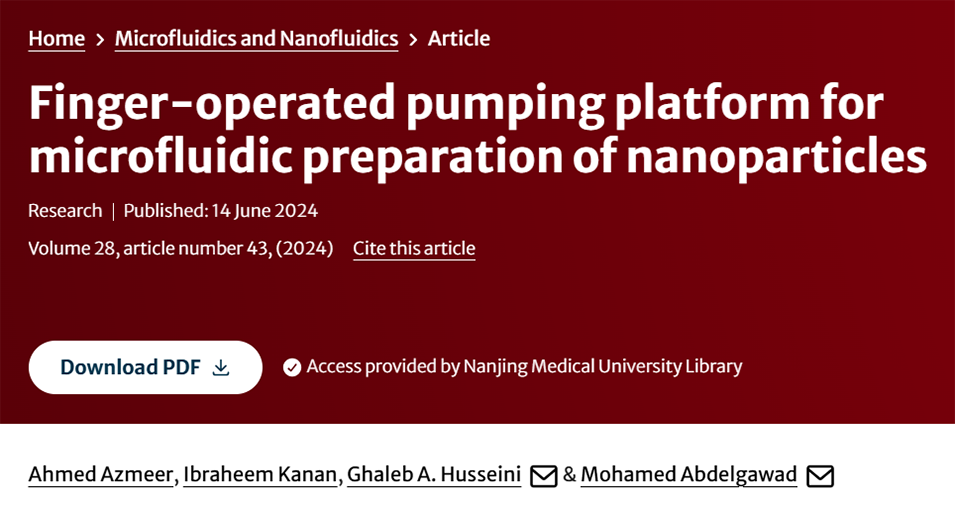 近期,有研究人员提出了一种低成本的手指操作恒压泵平台,用于微流控制备纳米颗粒,为资源有限的实验室提供了一种简单易用的微流控纳米颗粒合成方法。相关研究以“Finger-operated pumping platform for microfluidic preparation of nanoparticles”为题目发表于期刊《Microfluidics and Nanofluidics》。