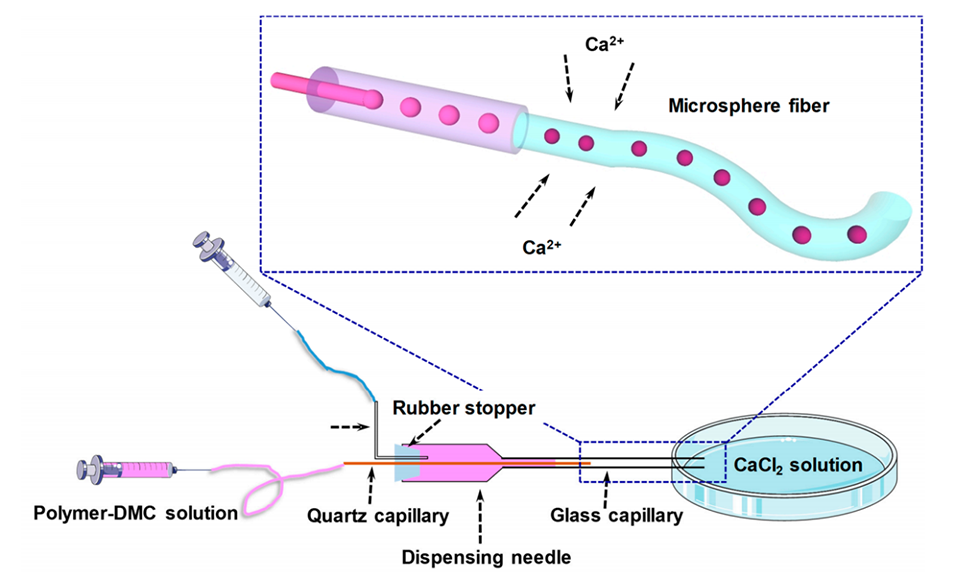 Scheme 1.微球纤维的微流控制备示意图。