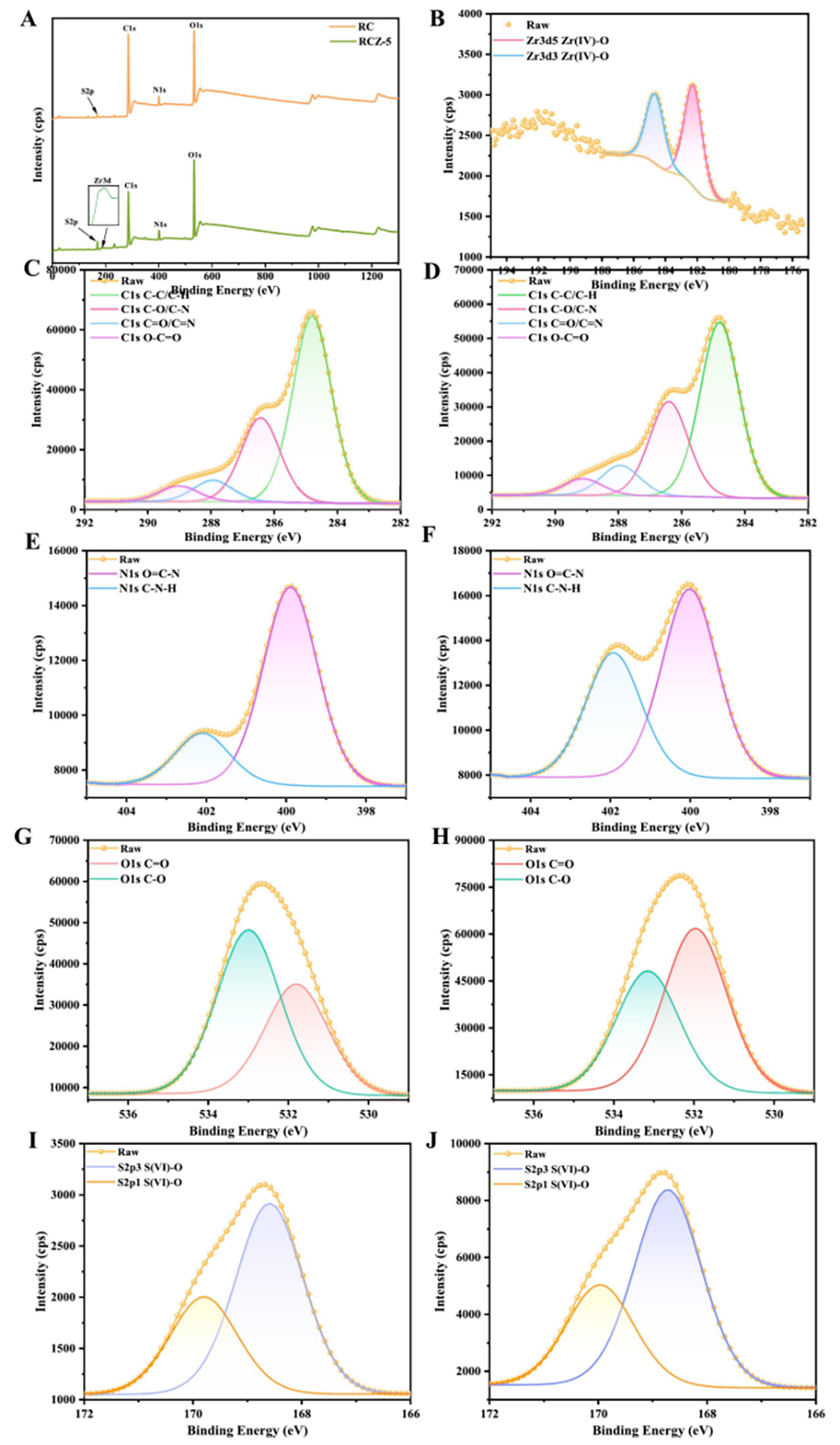 图4.RBP/CMC/ZrO2纤维的XPS分析。