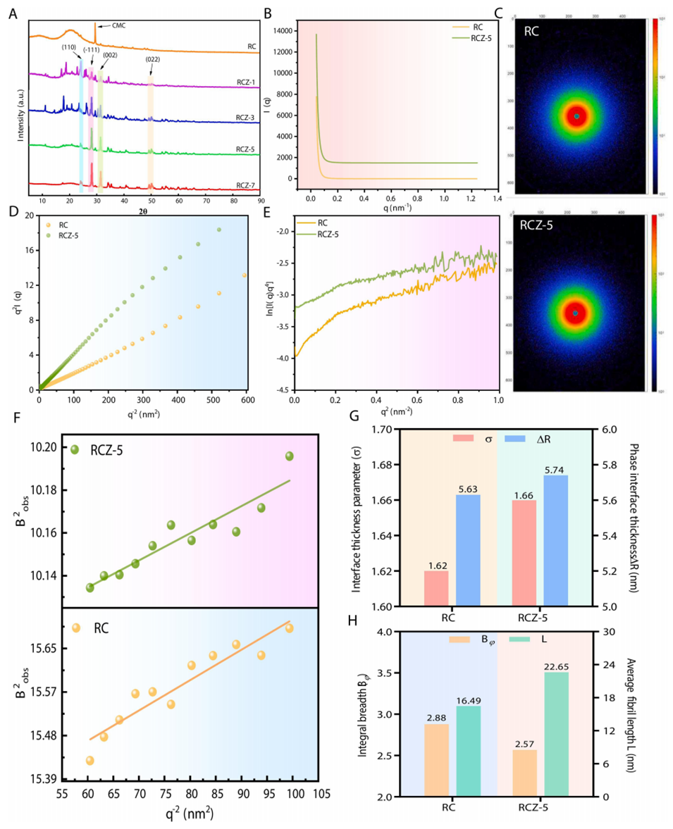 图2.RBP/CMC/ZrO2纤维的微观结构、分子间结构和稳定性。