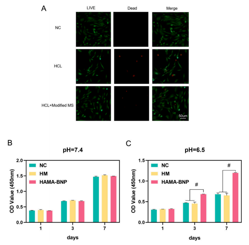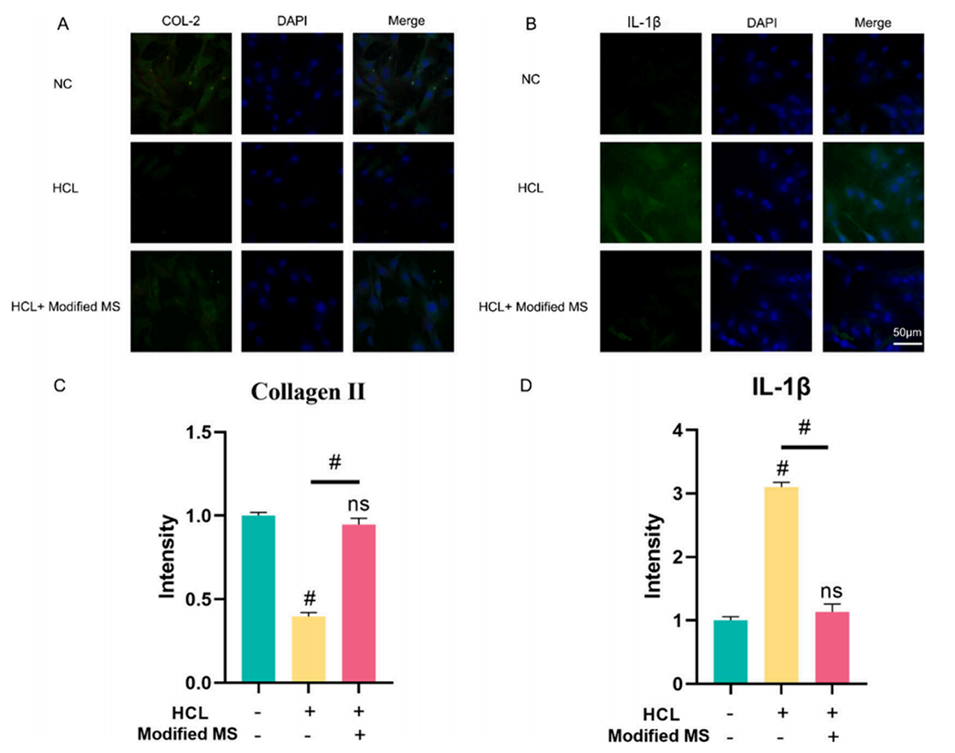 4、持续释放机制:IL-1 Ra被包裹在具有pH响应特性的改性HAMA微球中,这种微球能够在酸性环境中智能释放IL-1 Ra,从而实现局部高浓度的释放,显著增强其治疗效果。