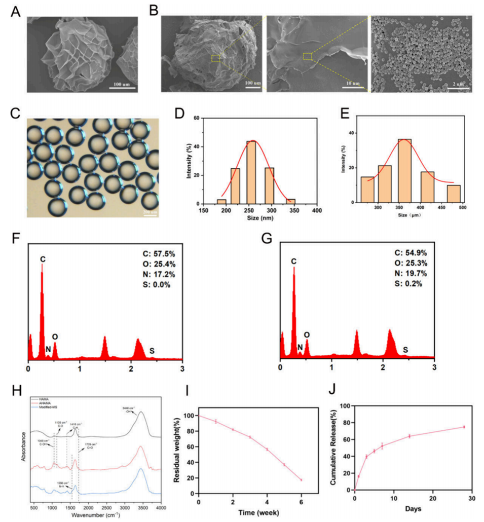 1、本研究利用微流控技术构建了酸敏释放甲基丙烯酸酯化透明质酸(HAMA)微球,通过微球表面的席夫碱化学键合,可作为椎间盘变性 (IVDD) 的靶向药物递送系统,实现智能药物释放。
