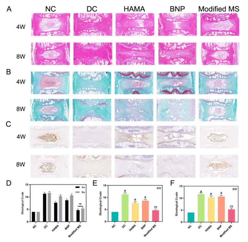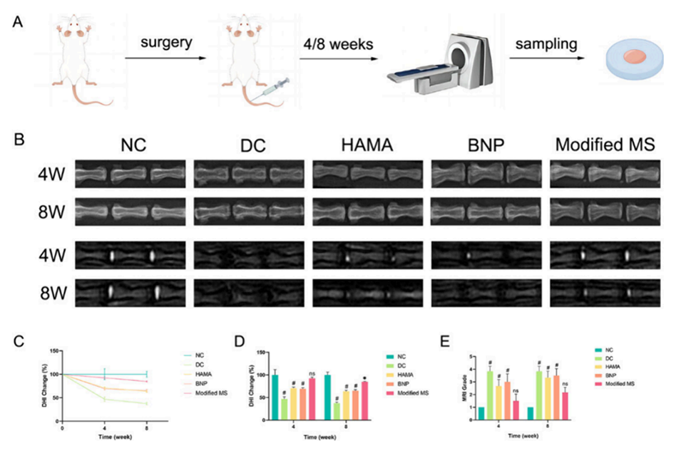 4、通过将改性HAMA微球-BNPs(改性MS)转运到退行性髓核,可以显著逆转炎症微环境,证实了其作为IVDD靶向给药系统的巨大潜力。