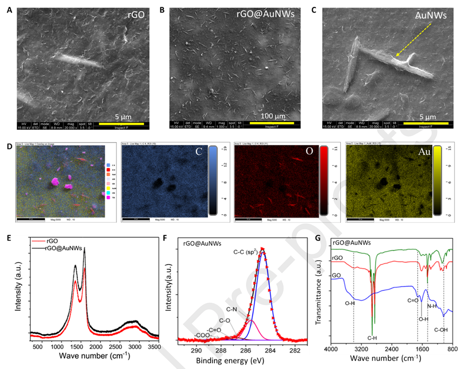 图3.rGO@AuNWs纳米复合材料的材料表征。