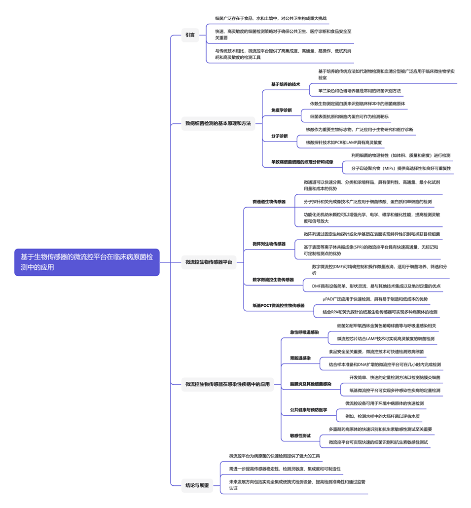 1、本文综述了微流控生物传感器在临床致病菌检测方面的研究进展,包括用于即时(POC)检测的微流控装置。