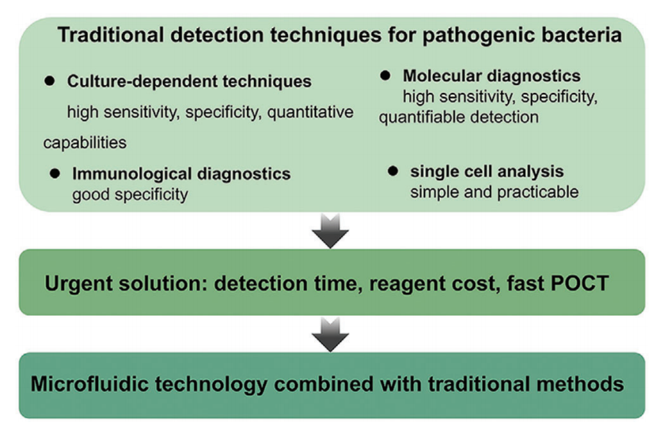图1.细菌检测的传统方法和与微流体相结合的方法概述。