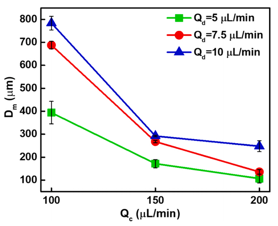 图5.微球的平均直径(Dm)随其对应的Qc-Qd值的变化。