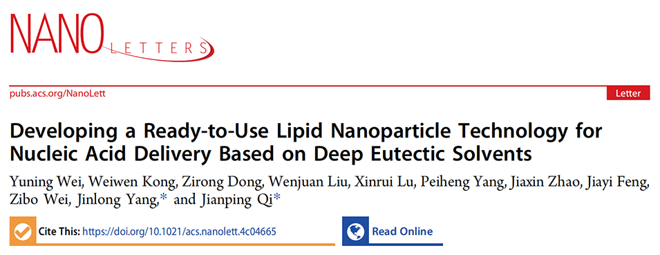 近期,复旦大学戚建平教授、杨金龙博士等人开发了一种基于深共熔溶剂(DES)的即用型脂质纳米颗粒(RULNP)技术,通过物理混合和水合实现纳米颗粒的快速自组装,克服了传统微流控技术的高成本和复杂性,同时实现了与传统脂质纳米颗粒相当的递送效率。相关研究以“Developing a Ready-to-Use Lipid Nanoparticle Technology for Nucleic Acid Delivery Based on Deep Eutectic Solvents”为题目,发表在期刊《Nano Letters》上。