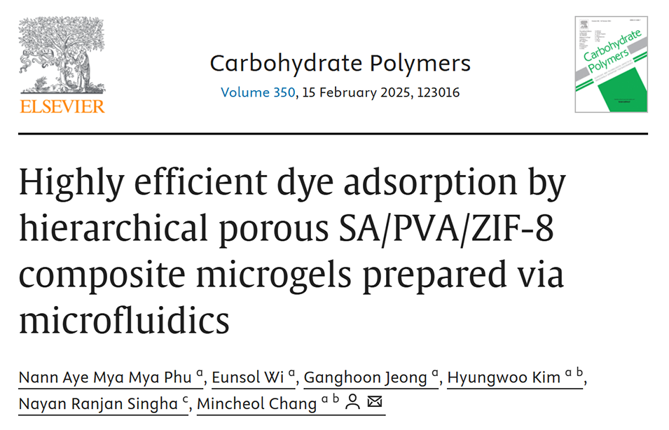 近期,全南国立大学Mincheol Chang等人提出了一种通过微流控技术制备的分级多孔SA/PVA/ZIF-8复合微凝胶,该微凝胶对阳离子和阴离子染料具有卓越的吸附性能,为染料废水处理提供了一种高效、可重复使用的解决方案。相关研究以“Highly efficient dye adsorption by hierarchical porous SA/PVA/ZIF-8 composite microgels prepared via microfluidics”为题目,发表在期刊《Carbohydrate Polymers》上。
