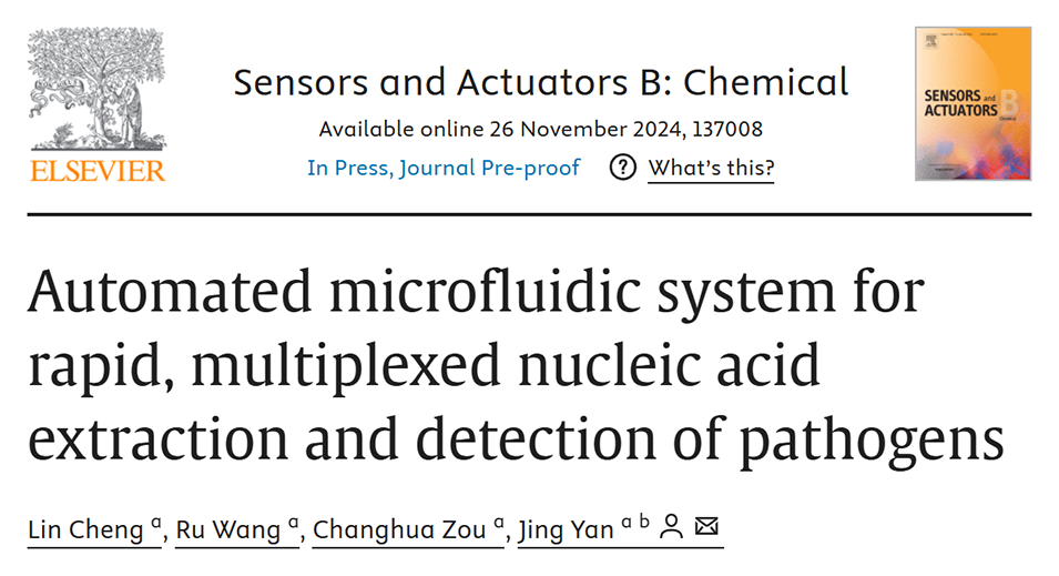 近期,剑桥大学医学院客座教授、江苏汇先医药技术有限公司创始人颜菁团队提出了一种用于NA检测的集成式全自动微流控系统,旨在实现“样品进、结果出”的无缝工作流程。相关研究以“Automated microfluidic system for rapid, multiplexed nucleic acid extraction and detection of pathogens”为题目,发表在期刊《Sensors and Actuators B: Chemical》上。