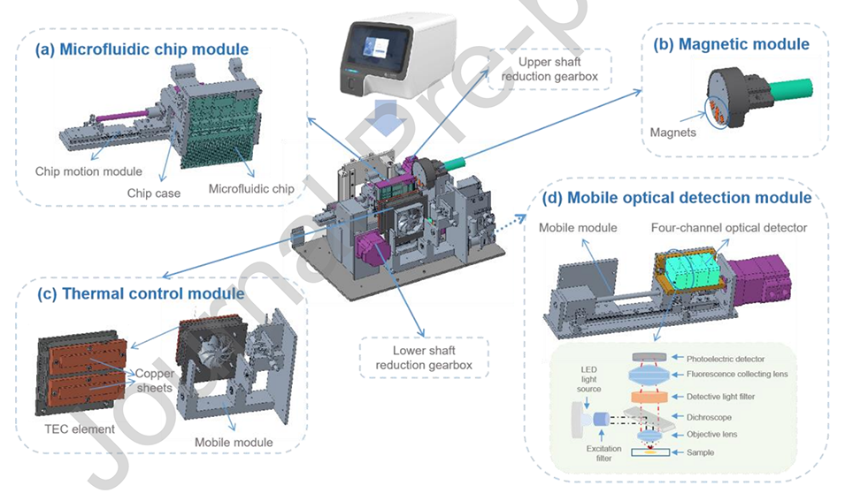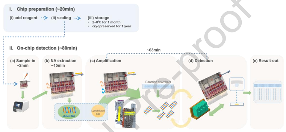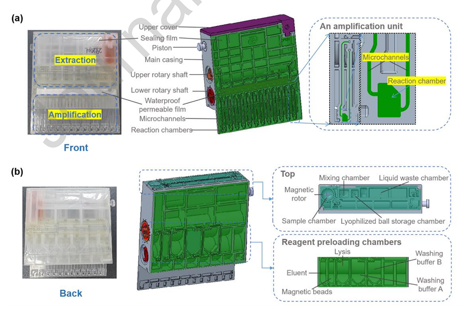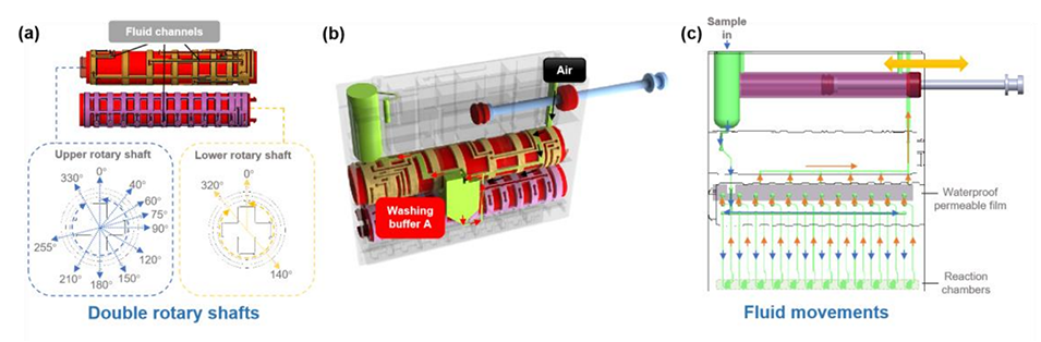 2、该系统通过集成两个旋转轴和片上预装试剂,减少了人为干预,最大限度地降低了污染风险,并加快了多重病原体检测过程。