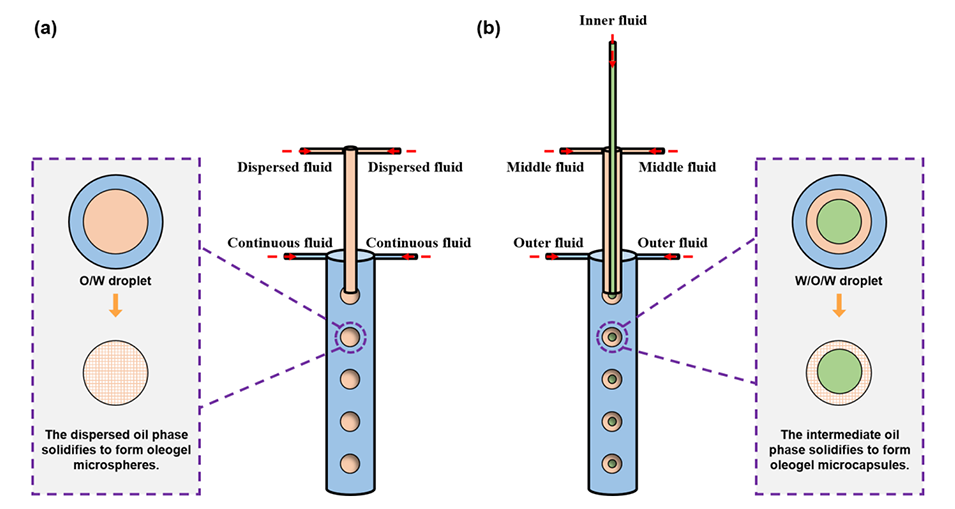 微流控平台配备自构建的温控系统,确保分散相在形成液滴前保持熔融状态,并在液滴形成后快速冷却固化为油凝胶微球。