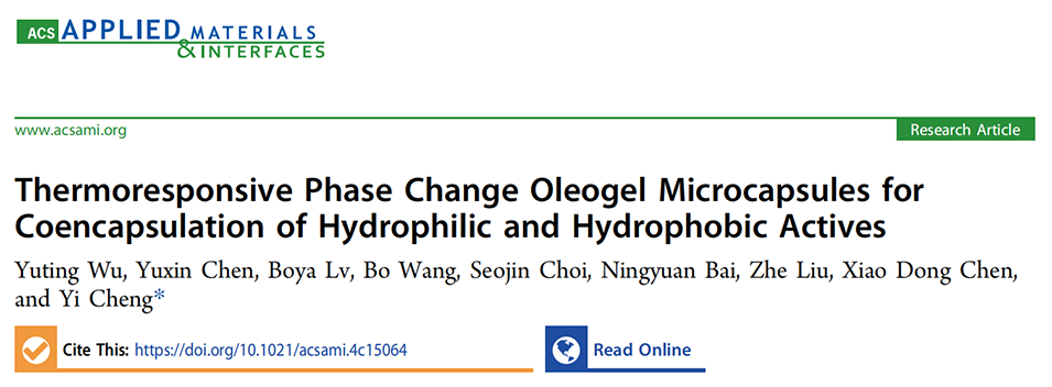 近期,清华大学化学工程系程易教授团队采用微流控技术制备了基于EstoGel M的油凝胶微胶囊,能够同时包封疏水性和亲水性活性成分。所制备的微胶囊具有良好的触感体验和温度稳定性,为开发集高包封效率和多功能属性于一体的创新个人护理产品提供了一种有前景的策略。相关研究以“Thermoresponsive Phase Change Oleogel Microcapsules for Coencapsulation of Hydrophilic and Hydrophobic Actives”为题目,发表在期刊《ACS Applied Materials & Interfaces》上。