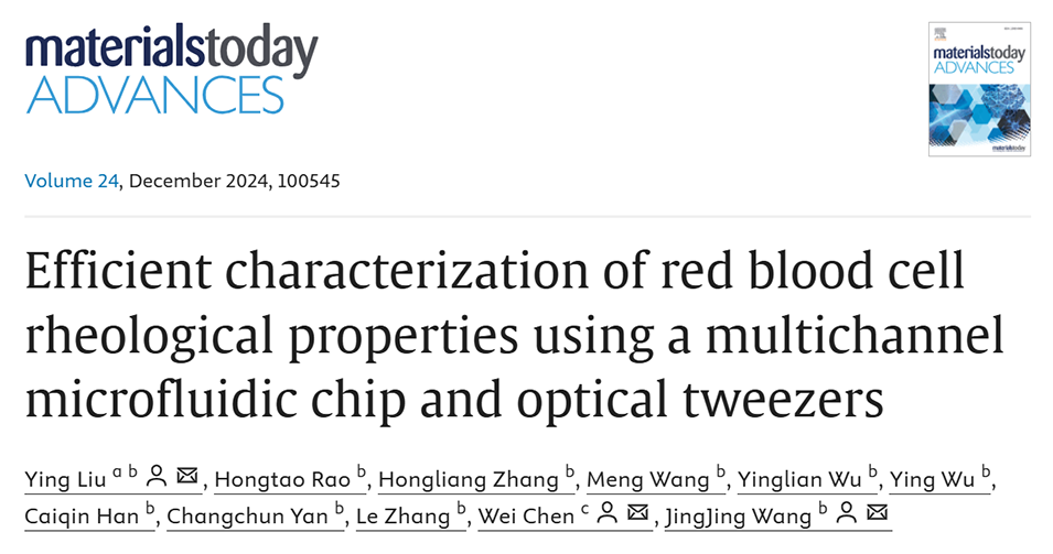 近期,江苏师范大学刘莹教授、王静静博士与西交利物浦大学芯片学院院长陈伟教授合作,提出了一种结合多通道微流控芯片和光镊技术的高效方法,用于非接触、高通量地表征红细胞流变特性,并通过压力释放结构和图像分析实现正常与病变红细胞的定量检测,为相关疾病诊断提供潜在指导。相关研究以“Efficient characterization of red blood cell rheological properties using a multichannel microfluidic chip and optical tweezers”为题目,发表在期刊《Materials Today Advances》上。