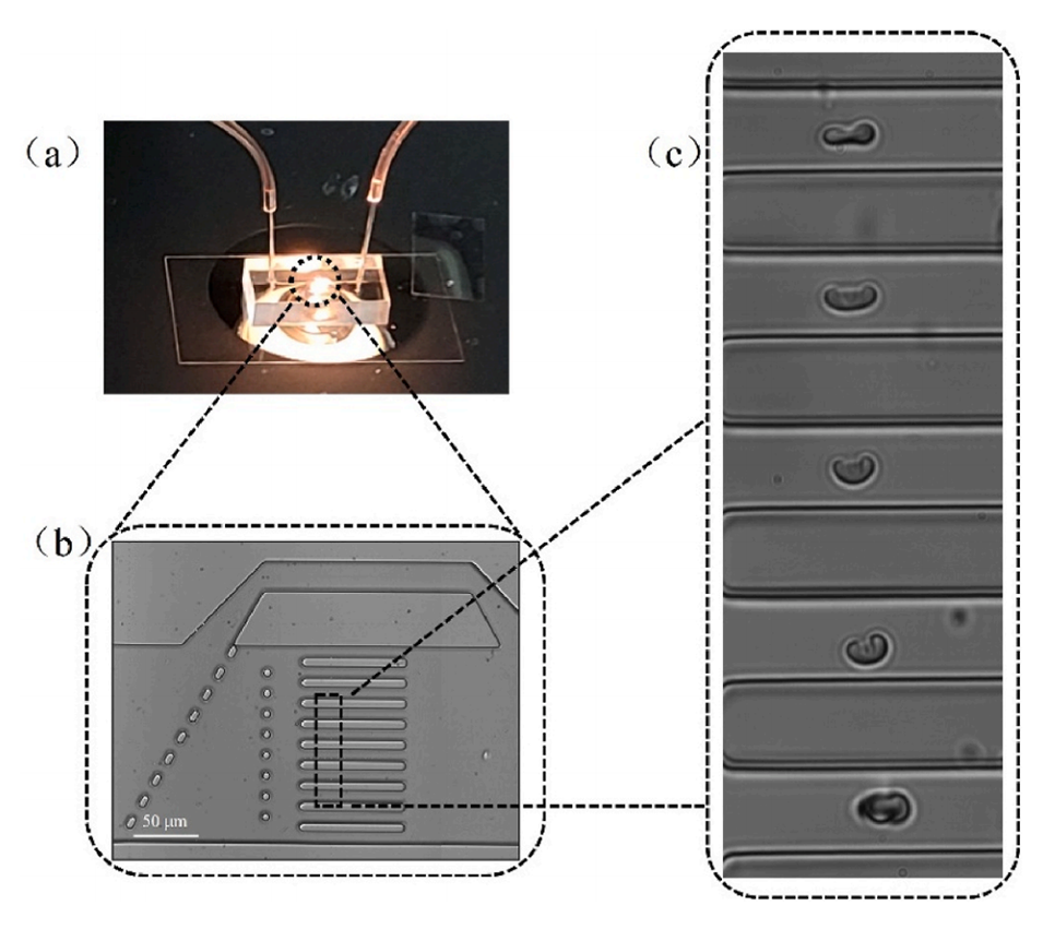 2、通道尺寸优化:捕获通道的宽度设计为红细胞直径的1.5倍(12 μm宽,10 μm深),确保红细胞单个通过通道并进入光学势阱,避免多细胞重叠捕获或逃逸。