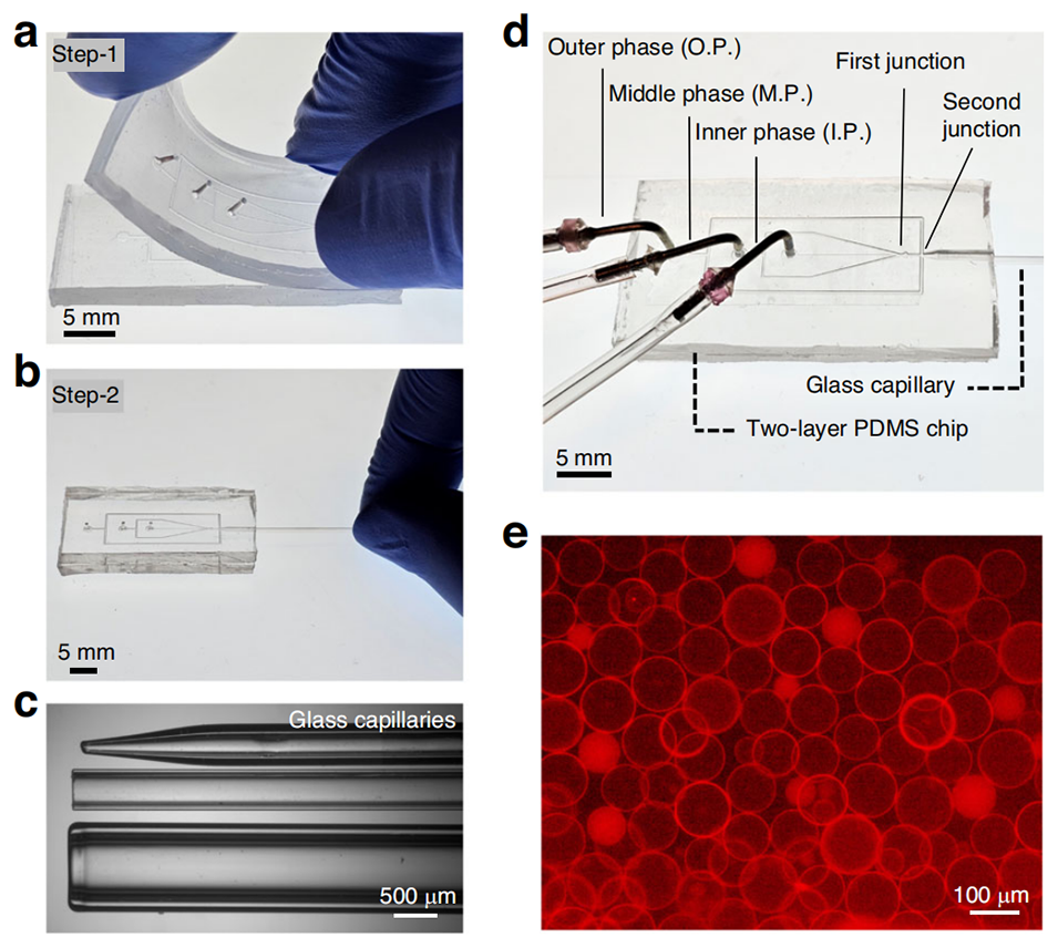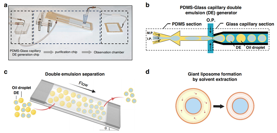 通过这些改进,该设备为双乳液的形成和纯化提供了一种简单、灵活且可靠的方法,推动了巨型脂质体和合成细胞的高通量制备。