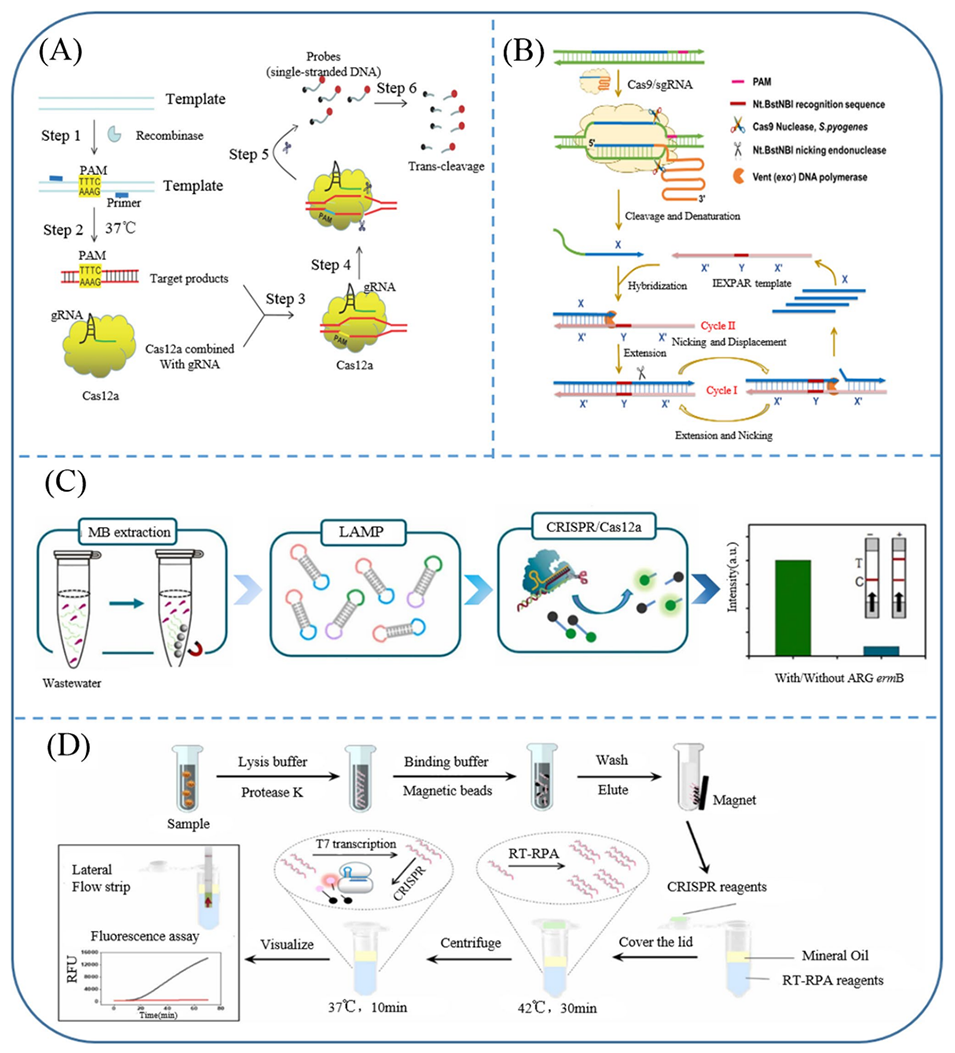 图3.利用核酸扩增和基于CRISPR的系统来识别ARGs及其在废水分析中的应用。