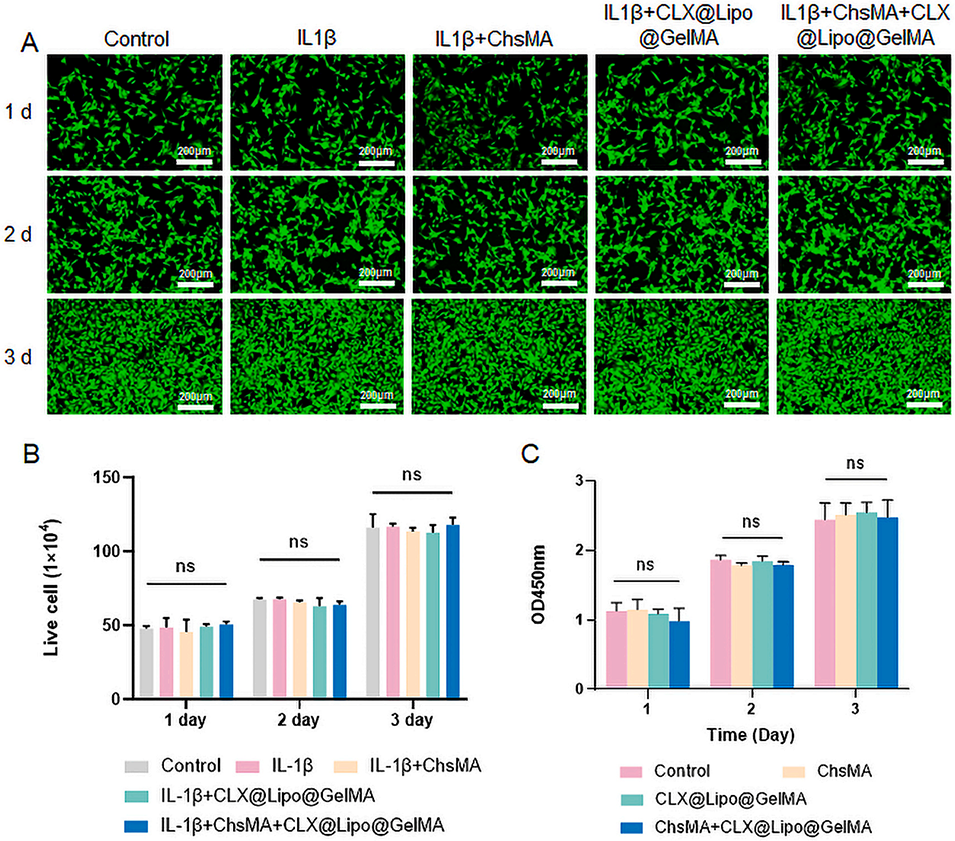 图3.ChsMA+CLX@Lipo@GelMA双层微球的生物相容性。