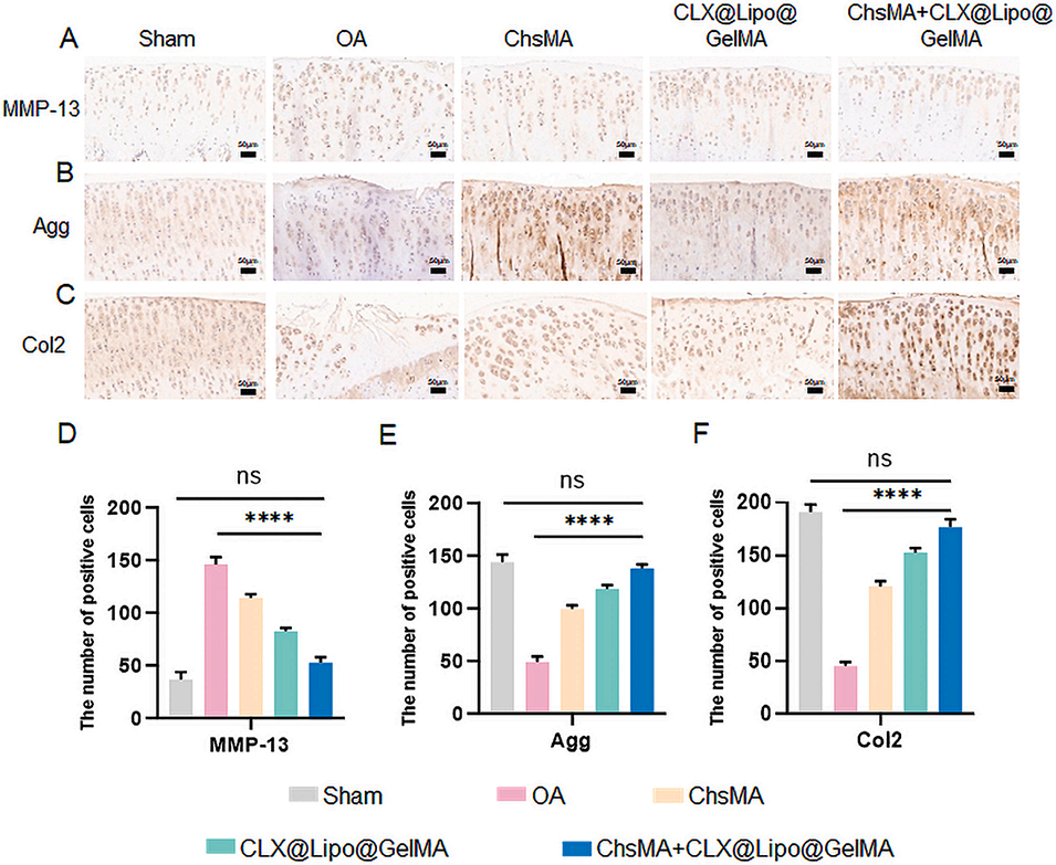 图7.术后8周大鼠OA软骨的免疫组织化学染色。