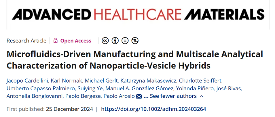 近期,苏黎世联邦理工学院化学与生物工程研究所的研究人员提出了一种新型的声学微流体设备(μSonicator),用于高效制备纳米颗粒-脂质囊泡混合物,并通过多种荧光技术对其进行定量表征,揭示了影响封装效率的关键操作参数和材料特性。相关研究以“Microfluidics-Driven Manufacturing and Multiscale Analytical Characterization of Nanoparticle-Vesicle Hybrids”为题目,发表在期刊《Advanced Healthcare Materials》上。