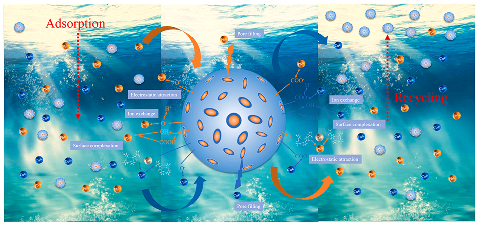 孔隙填充:水凝胶的三维多孔网络结构为重金属离子提供了丰富的吸附位点。Pb(II)和Cu(II)通过孔隙扩散到凝胶内部,利用其大比表面积和有效活性位点,显著提升吸附容量。