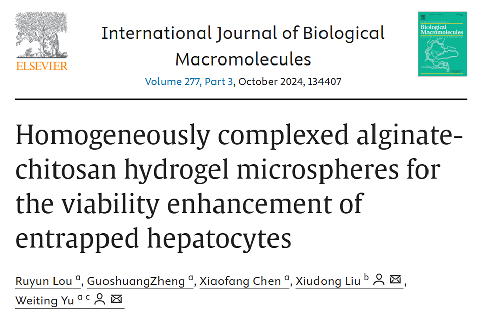 近期,大连大学附属中山医院于炜婷研究员与大连大学环境与化学工程学院刘袖洞教授合作,设计并制备了一种均匀复合的海藻酸盐-壳聚糖水凝胶微球,这些微球能够有效增强截留肝细胞的活力和肝脏特异性功能,为生物医学领域提供了一种新的肝细胞培养平台。相关研究以“Homogeneously complexed alginate-chitosan hydrogel microspheres for the viability enhancement of entrapped hepatocytes”为题目,发表在期刊《International Journal of Biological Macromolecules》上。