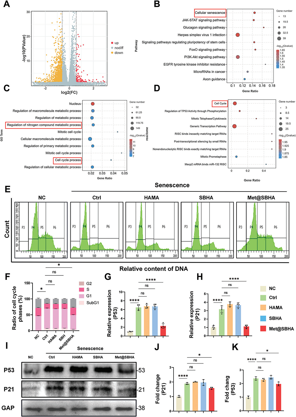 4、RNA测序(RNA-seq)分析、网络药理学和体外实验显示,Met@SBHA在对抗软骨细胞衰老方面具有显著效果,诱导一氧化氮合酶(iNOS)被确定为其调节的关键蛋白。