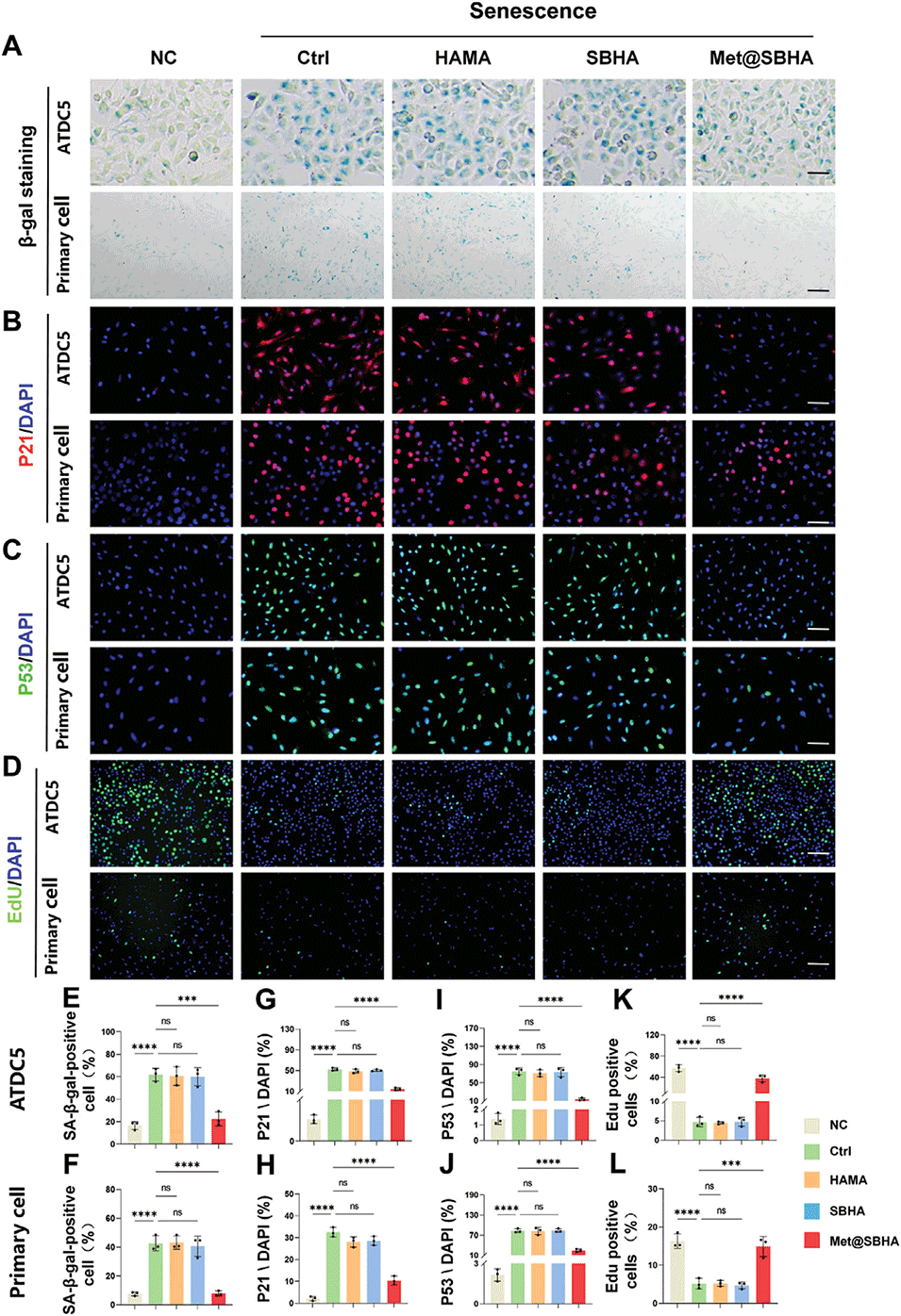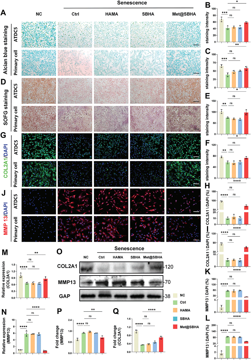 图4.Met@SBHA在体外缓解软骨细胞衰老。