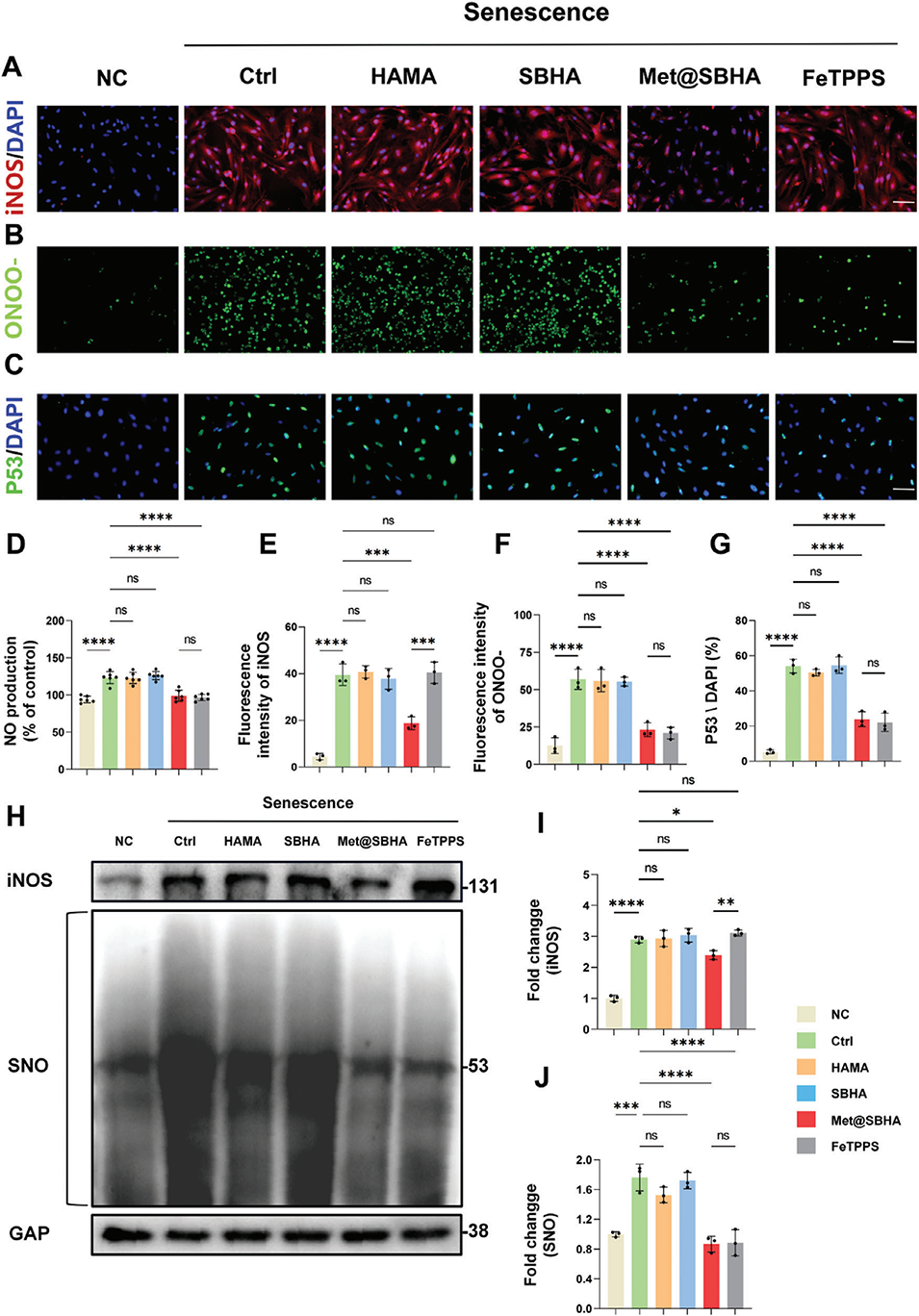 图7.Met@SBHA通过影响iNOS/ONO-/P53通路减轻软骨细胞衰老。