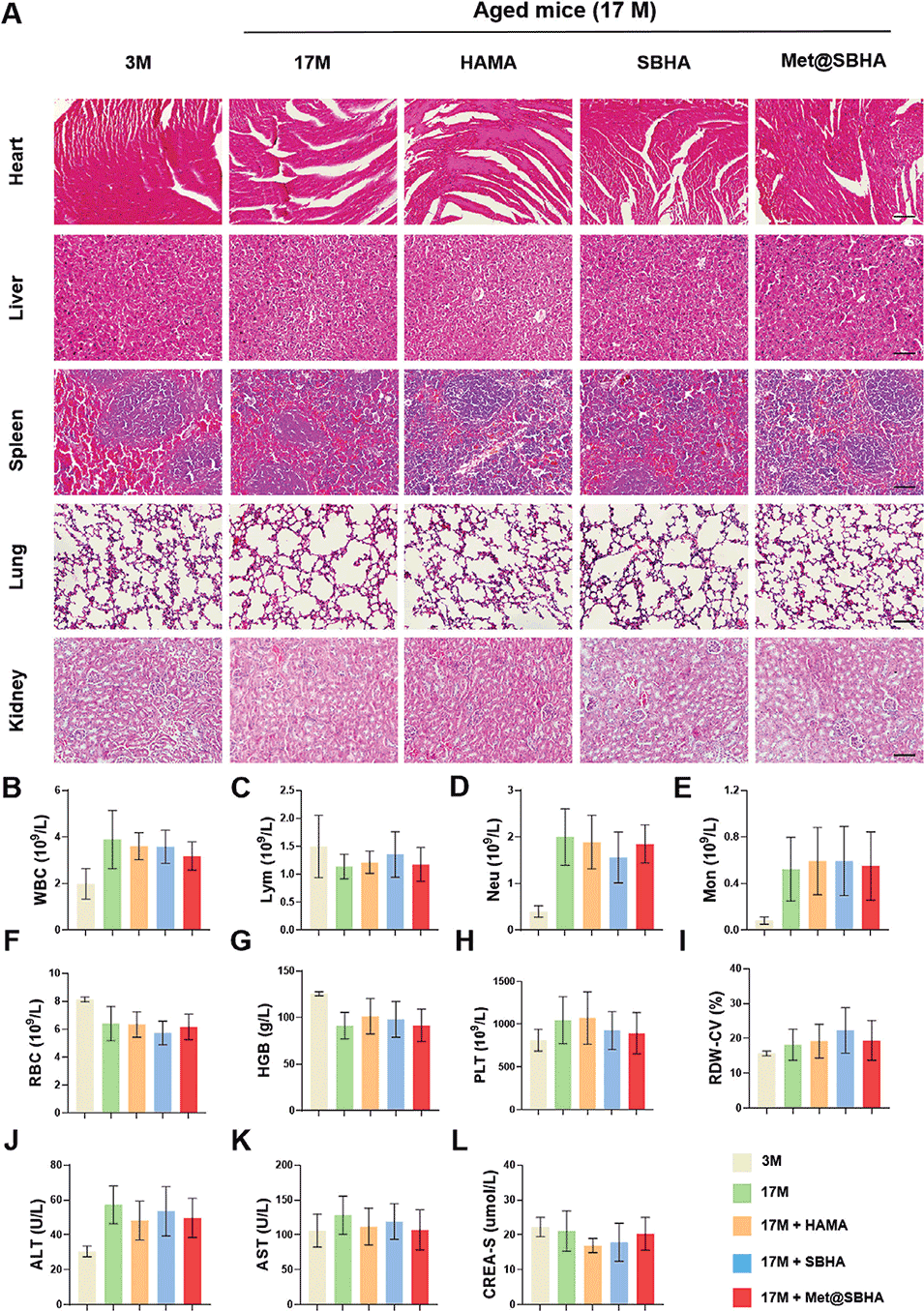 图9.Met@SBHA的体内生物相容性和生物安全性。