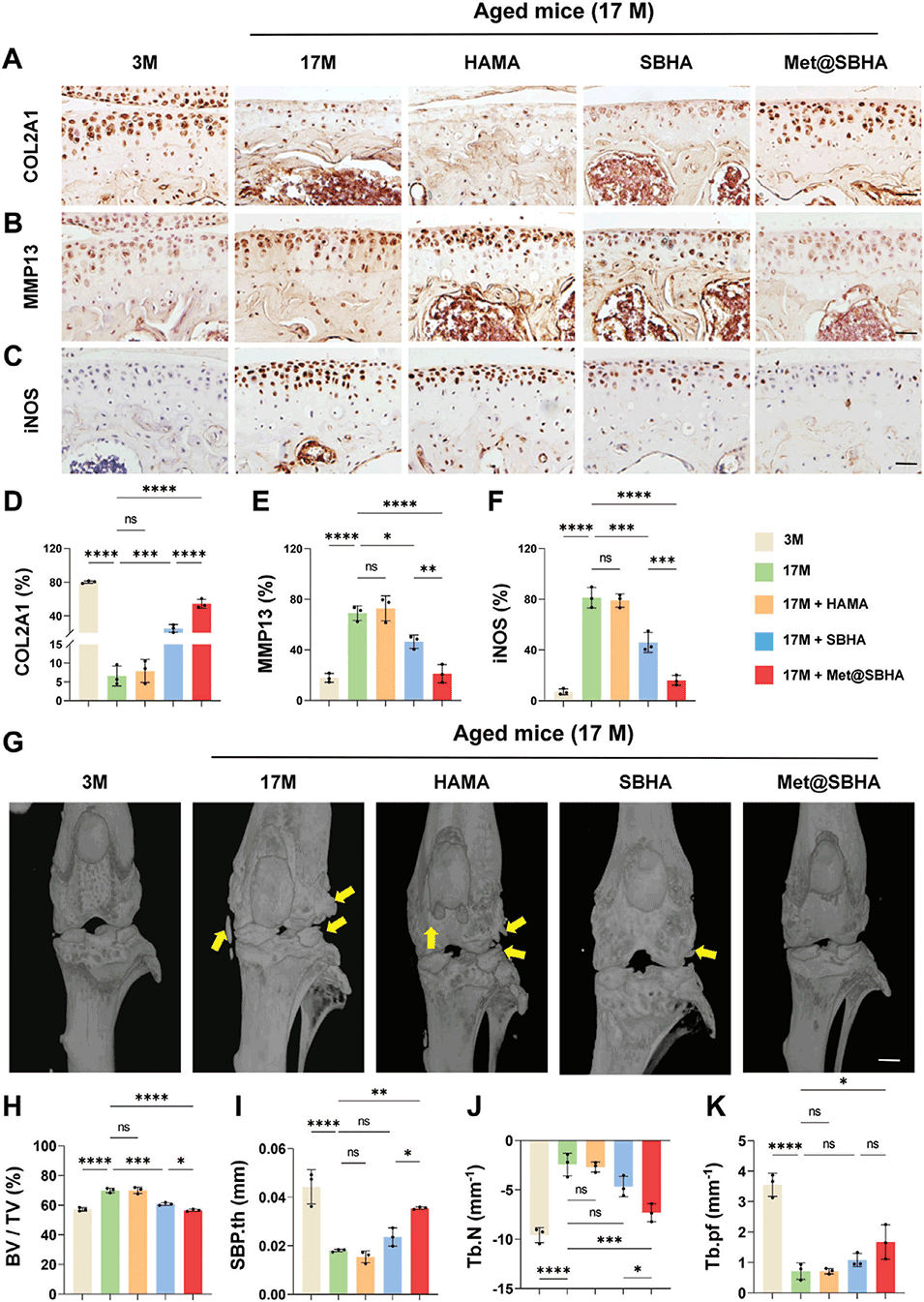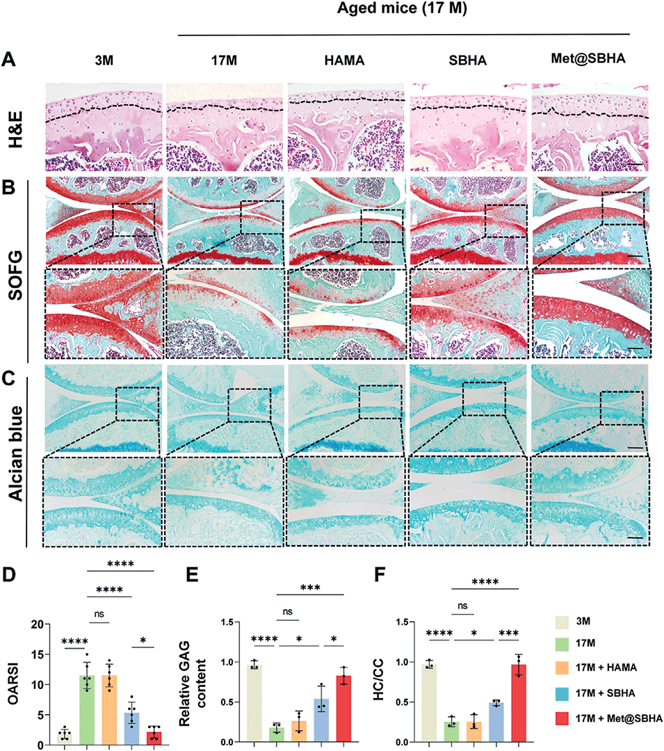 图11.Met@SBHA有效缓解年龄相关骨关节炎的软骨退化。