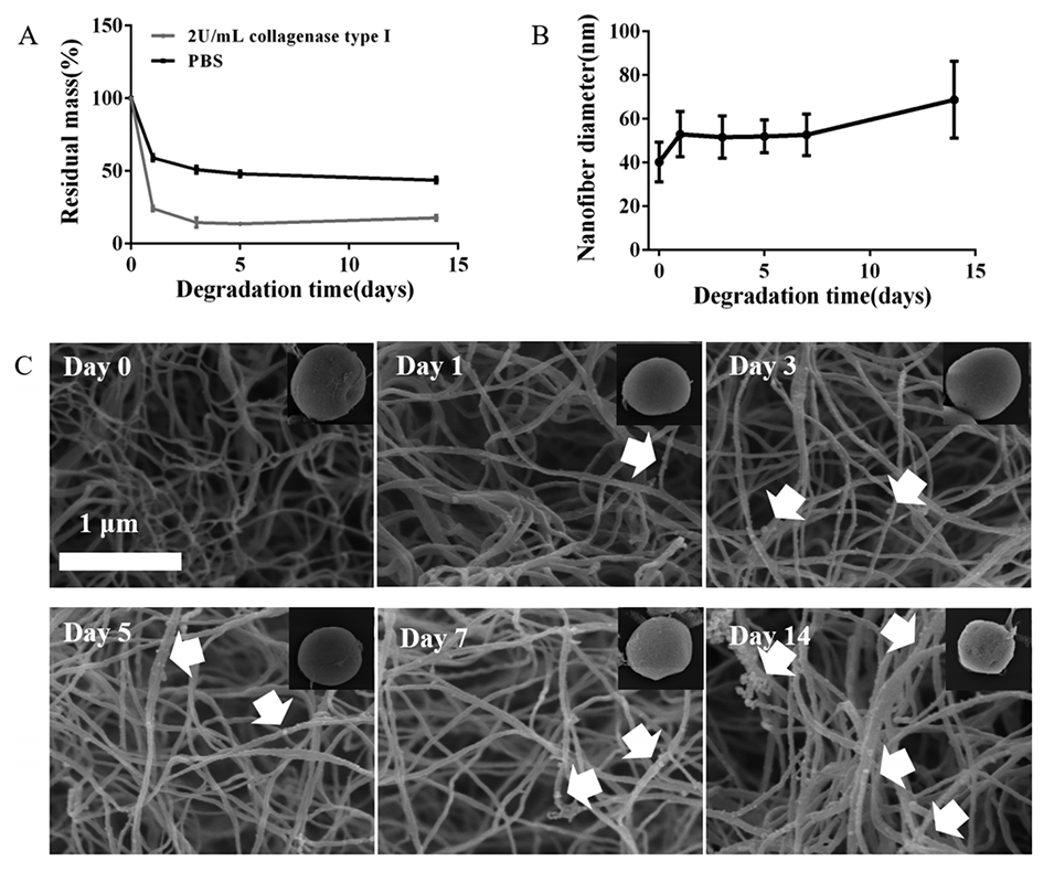 图5.pDNM-MSs在PBS溶液中的降解和形态变化。