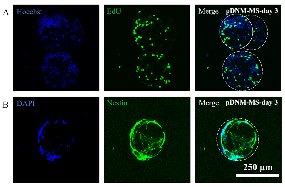 图7.在pDNM-MSs上3D培养的NSPCs的免疫荧光染色。