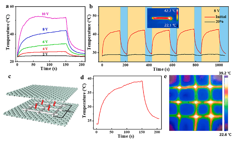 图5.PU@PEDOT:PSS纤维的电热性能。