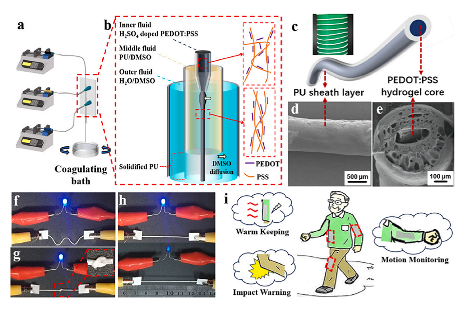 全聚合物材料避免了金属导线的尖锐边缘或液态金属的毒性风险,同时通过微流控纺丝技术(MST)实现了安全、快速、连续的制备工艺。