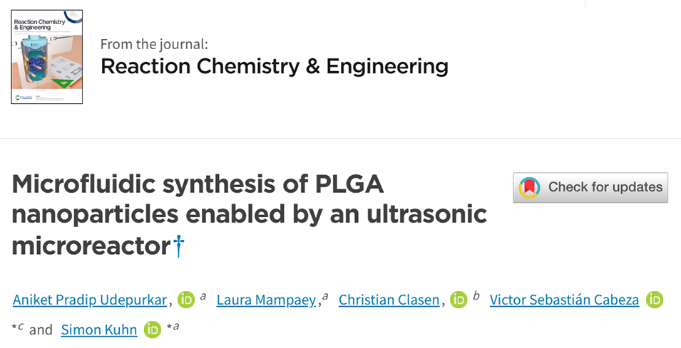 近期,有研究人员提出了一种基于超声微反应器的乳液-溶剂蒸发技术,用于高效合成单分散PLGA纳米颗粒(PDI < 0.3,粒径115–150 nm),并成功实现了疏水性染料Nile Red的包封与三相释放,展示了其在生物医学领域的广泛应用潜力。相关研究以“Microfluidic synthesis of PLGA nanoparticles enabled by an ultrasonic microreactor”为题目发表于期刊《Reaction Chemistry & Engineering》。