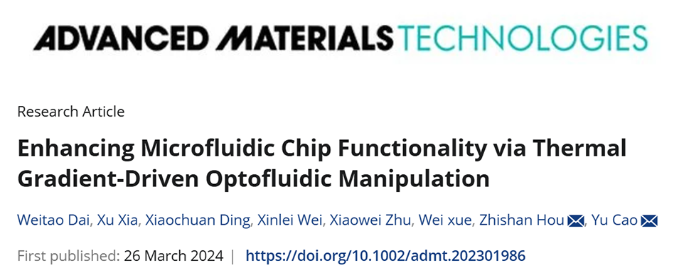近期,温州大学曹宇教授、侯智善博士等人提出了一种基于热梯度驱动的光流控微平台,通过在碳纳米管掺杂的PDMS基板内创建高光电转换区域(HPCR),利用局部热梯度诱导瑞利-贝纳德对流,实现了微流控芯片中流体和颗粒的长距离传输与控制。该平台在流体混合和材料分选等方面展现出巨大的应用潜力。相关研究以“Enhancing Microfluidic Chip Functionality via Thermal Gradient-Driven Optofluidic Manipulation”为题目发表于期刊《Advanced Materials Technologies》。