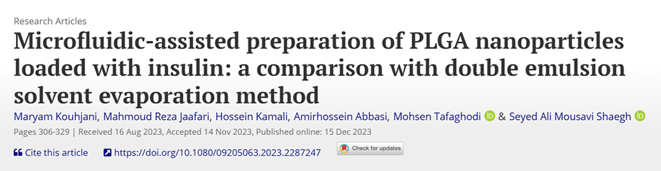 近期,有研究人员通过微流控辅助合成负载胰岛素的PLGA纳米颗粒,并将其与双乳液溶剂蒸发(DESE)法进行比较,着重凸显了微流控技术在粒径控制、药物封装效率和生产一致性方面的优势。相关研究以“Microfluidic-assisted preparation of PLGA nanoparticles loaded with insulin: a comparison with double emulsion solvent evaporation method”为题目,发表在期刊《Journal of Biomaterials Science, Polymer Edition》上。